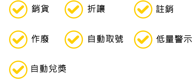 完整的發票功能,系統自動取號、自動配號、自動上傳財稅中心,管理者不需要再為每一張訂單的發票問題煩惱!